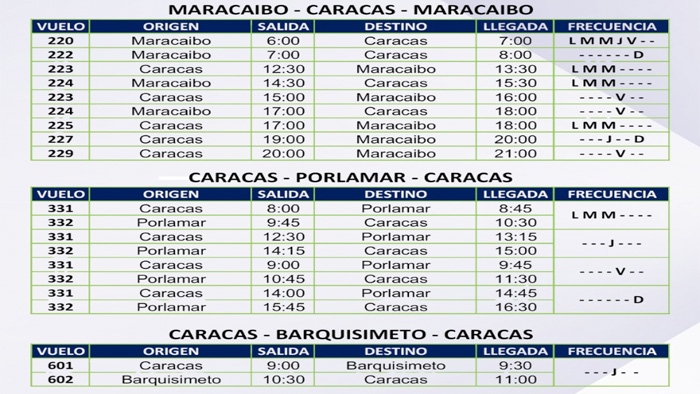 Aeropuerto Internacional Jacinto Lara: Local A-01 Venezolana. Barquisimeto - Venezuela. Lunes de 06:30 a.m. a 03:30 p.m. Martes de 08:00 a.m. a 05:00 p.m. Miércoles de 06:30 a.m. a 03:30 p.m. Sábados y domingos de 9:00 a.m. a 06:00 p.m.